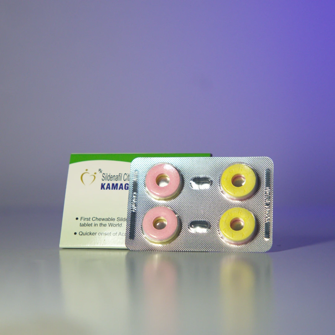 Pakovanje Kamagra bombona soft sadrži 4 tablete za žvakanje (4x100mg sildenafila). Bombone imaju prijatan voćni ukus.